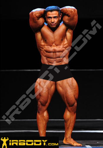 فیگور مورد علاقه قهرمان خوش استیل ایران زمین که مورد علاقه بسیاری از بدنسازان طراز اول دنیا نیز هست، به حجم عضله بازو و ساق و تقارن عضلات شکم توجه کنید